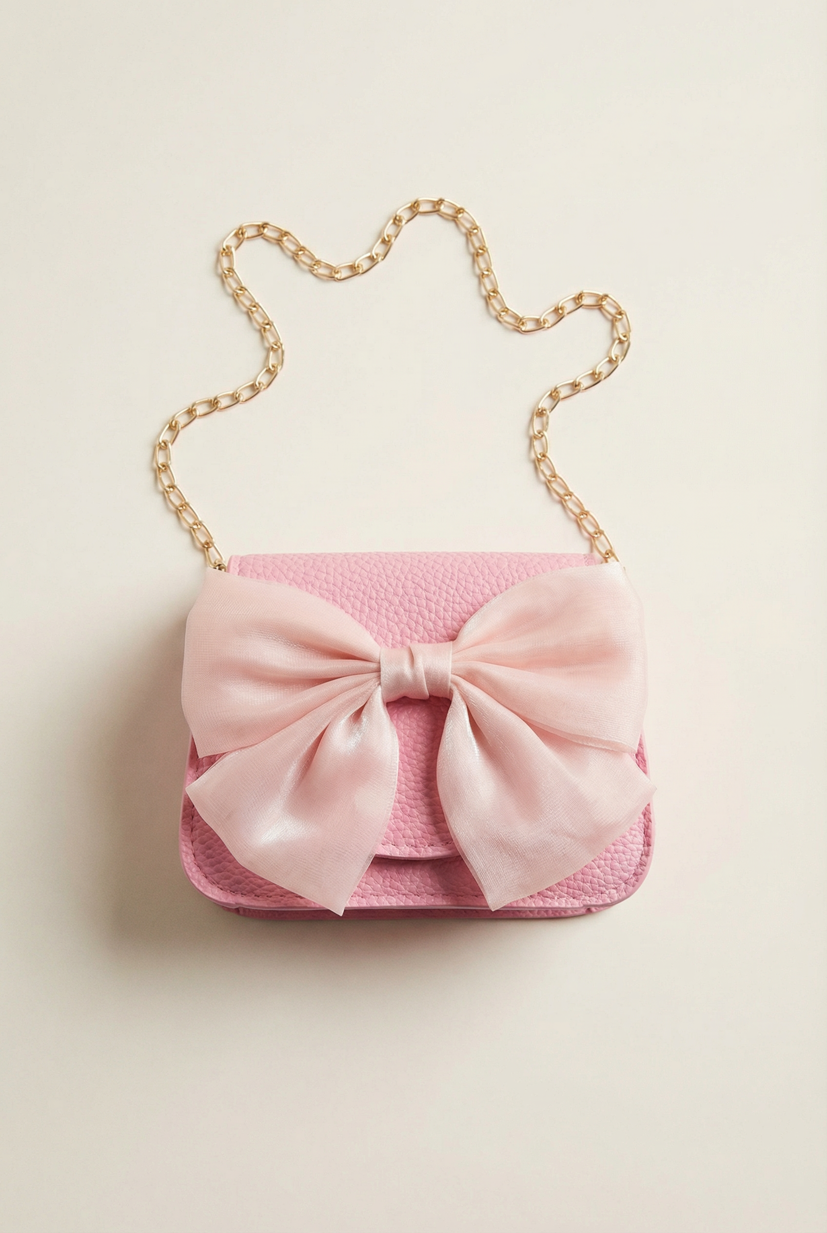 Elegant Pink Girls' Handbag with Bow and Gold Chain