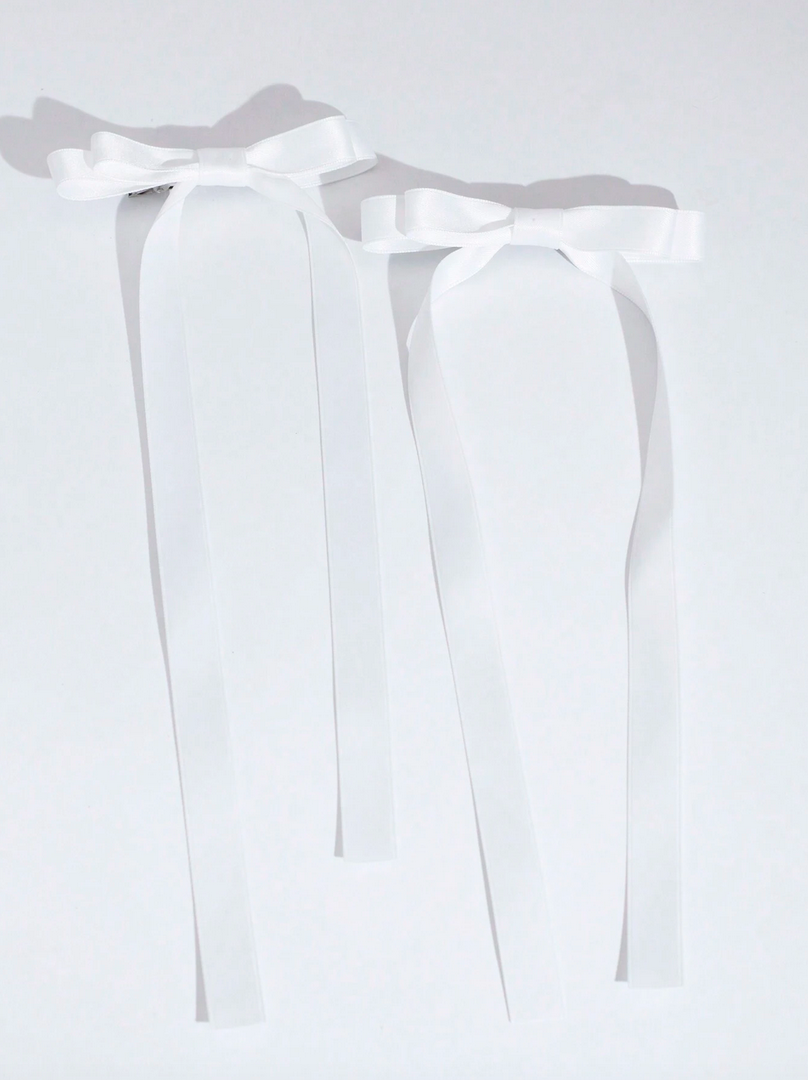 The satin material of the bows not only has a beautiful sheen but also a smooth texture, giving them a luxurious appearance. The white hair clips are an excellent choice for various ceremonies such as communions, weddings, or christenings, as well as other special occasions where elegance is key. Their classic white colour fits perfectly into festive atmospheres, adding a subtle yet refined accent to any hairstyle.