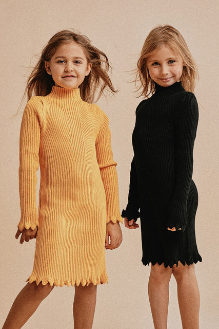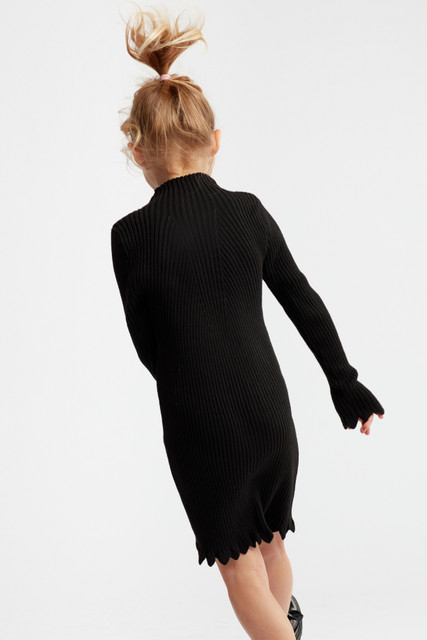 Turtleneck, welt around the neck, long sleeves finished with a spectacular ruffle.