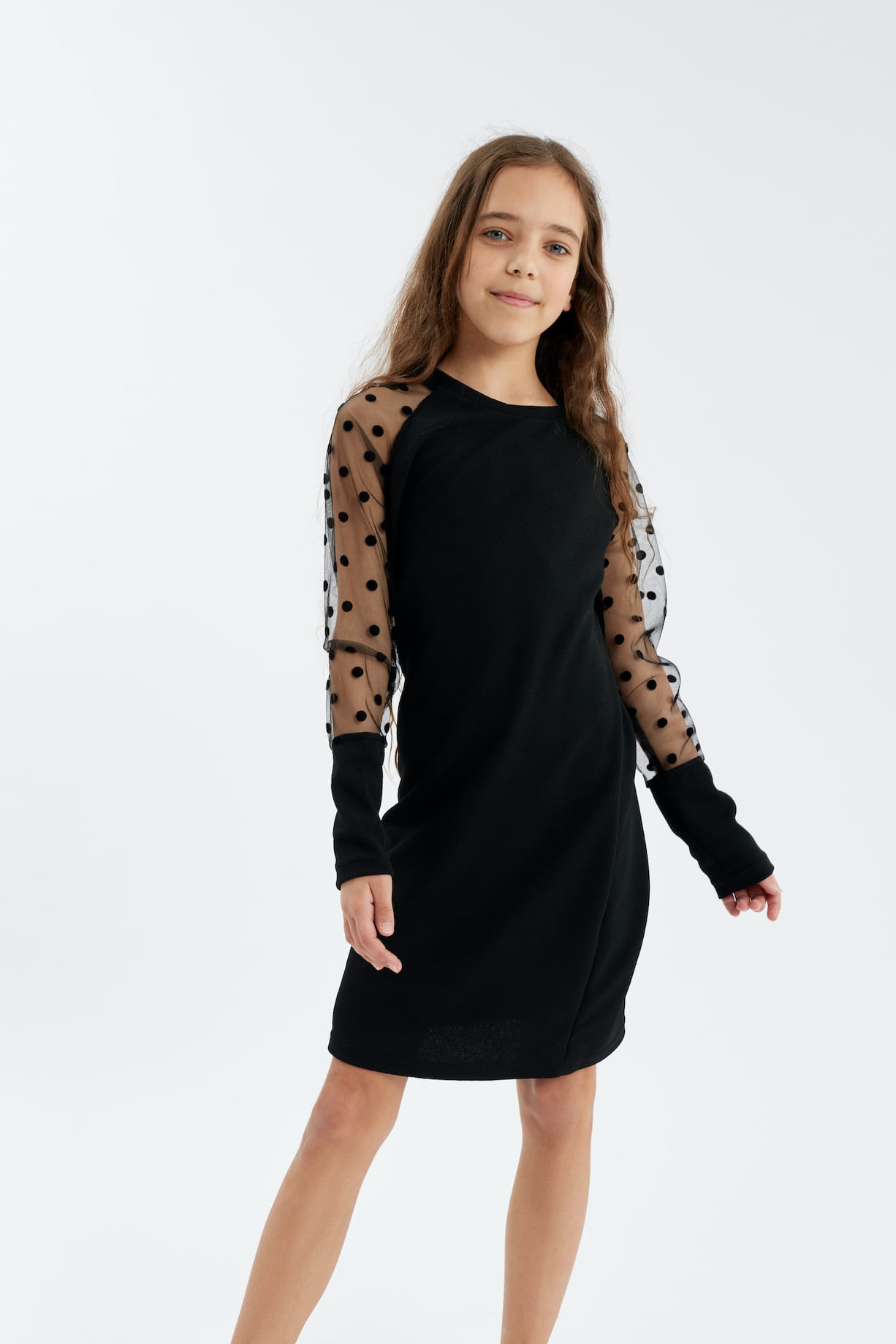 The sleeves, decorated with dots, add an extraordinary charm to the dress.